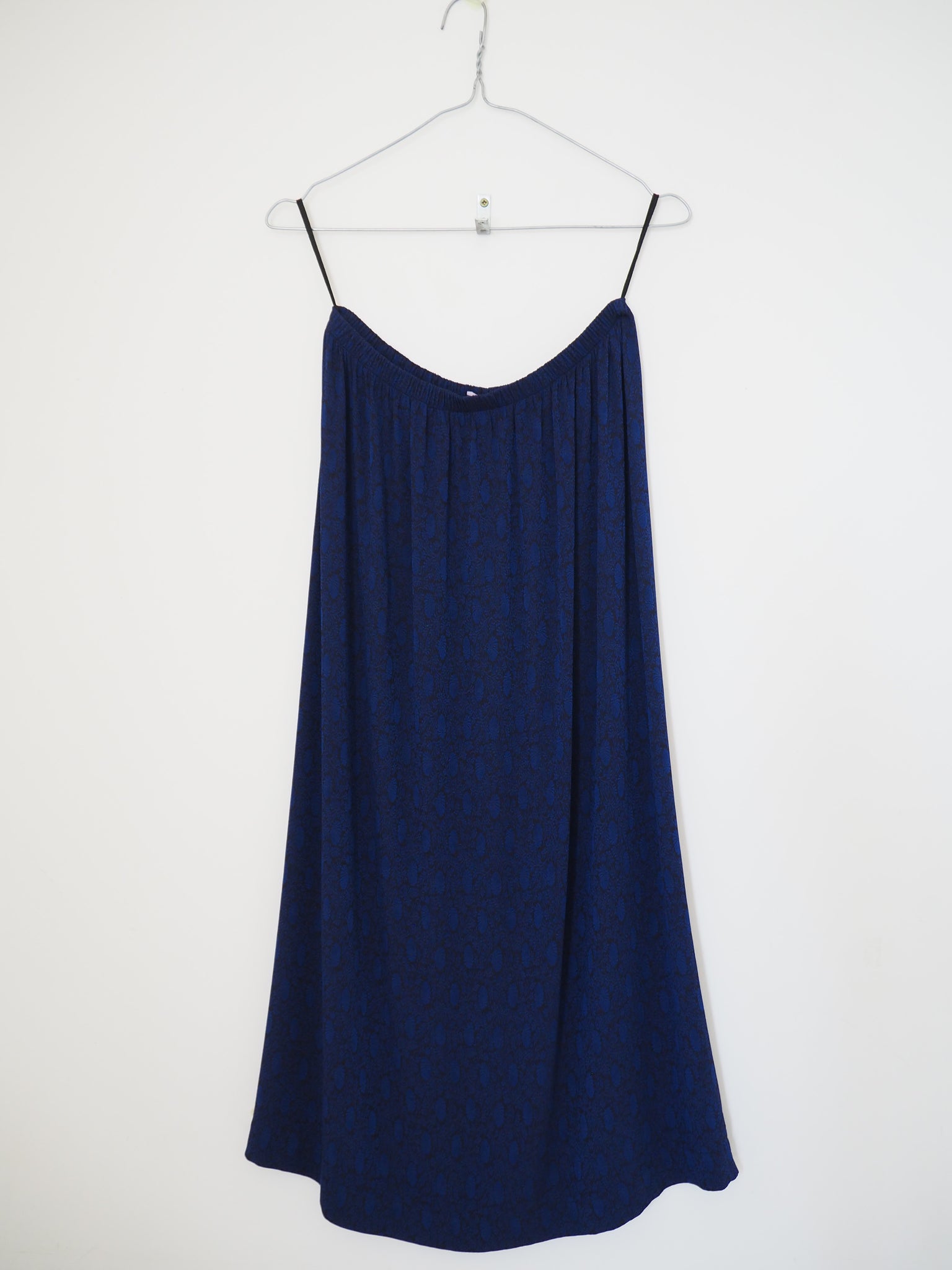 The Astrid skirt is a flattering straight line skirt with a split up the back. It usually finishes lower calf and has a softly gathered waist. Perfect for every day use.