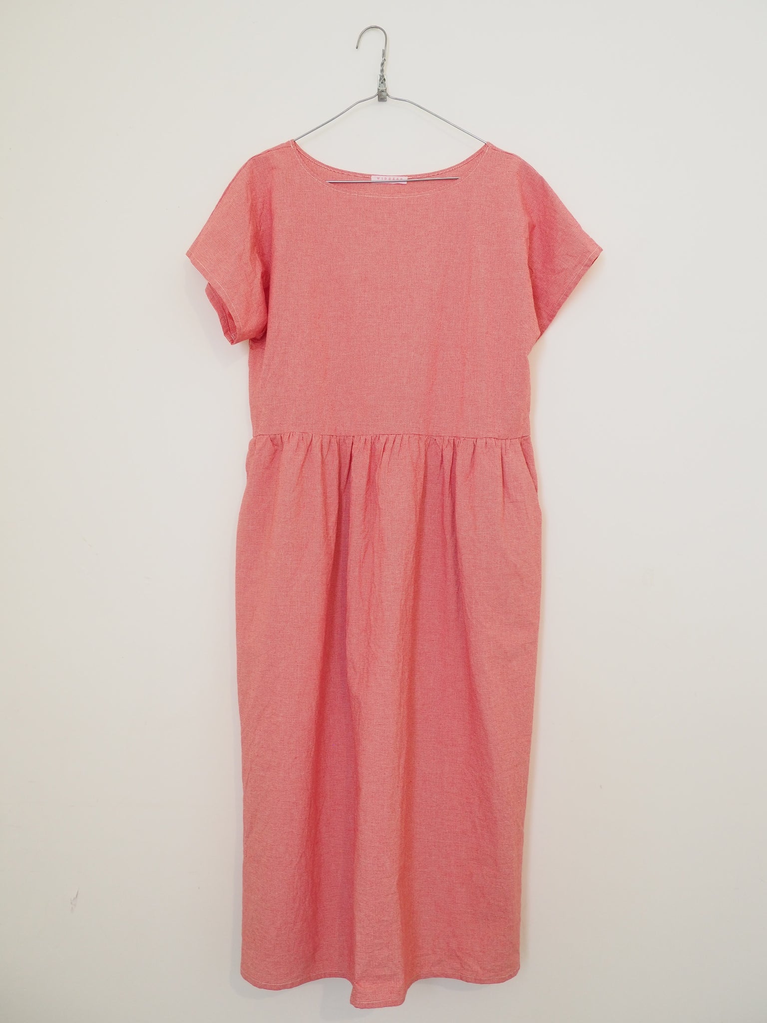 The Captain dress has capped sleeves, a boat neckline and a gathered skirt that finishes mid to lower calf. It is an easy and classic style that you can dress up or down.