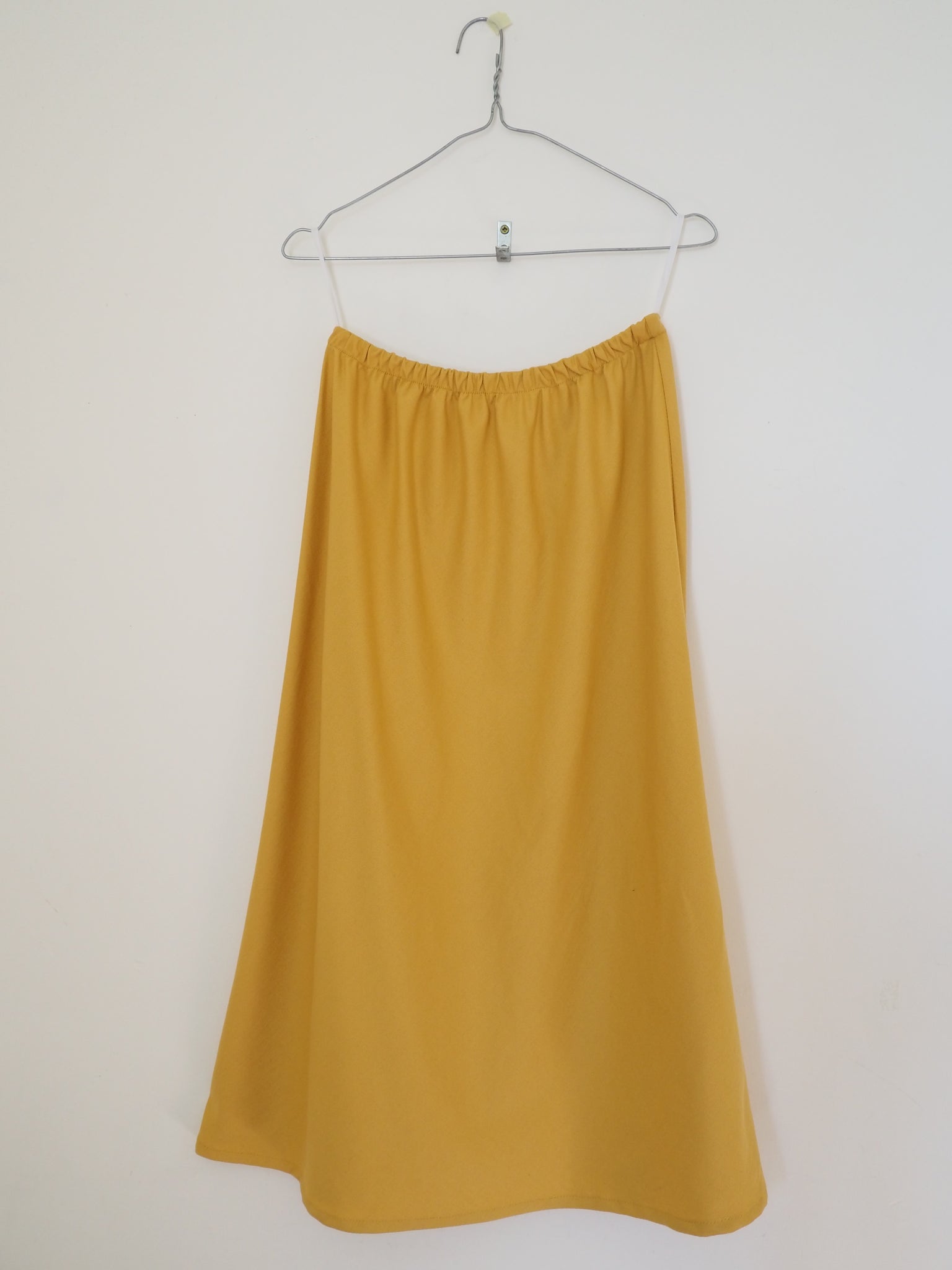 The Norah skirt is a flattering bias cut skirt with an elasticated waistband. It usually finishes lower calf and is a great everyday skirt.