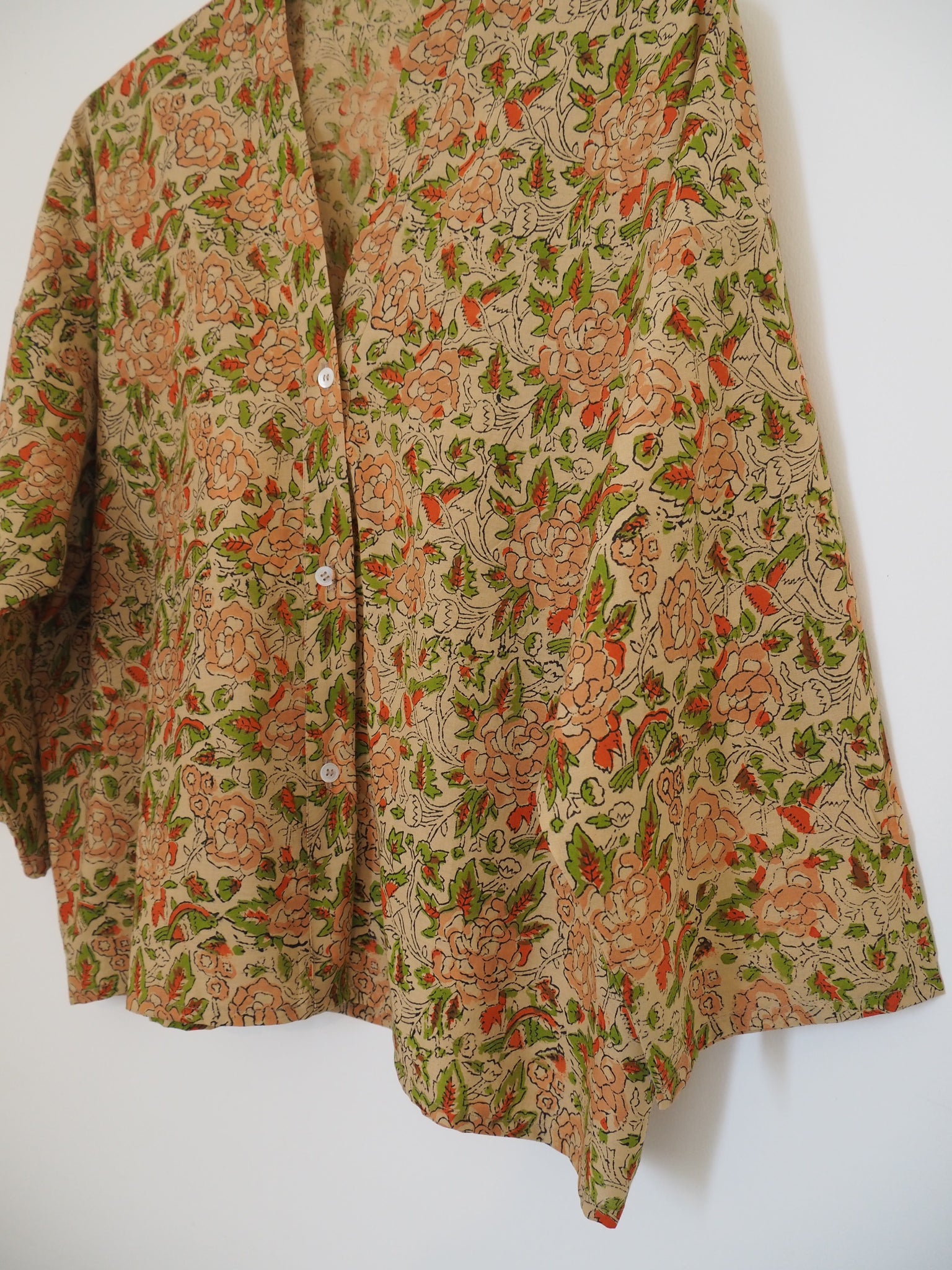 A classic and easy to wear light jacket kimono style shirt. The Temple is a relaxed fit and features natural shell buttons.